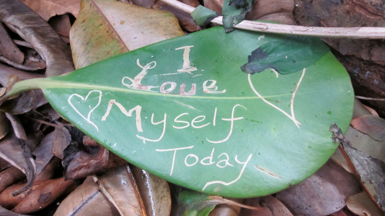 In 2012 I was having a glitchy moment whilst walking through the jungle in Hawaii, I looked down and a leaf spoke to me (see the image for the self love inspiration coming from the trees)